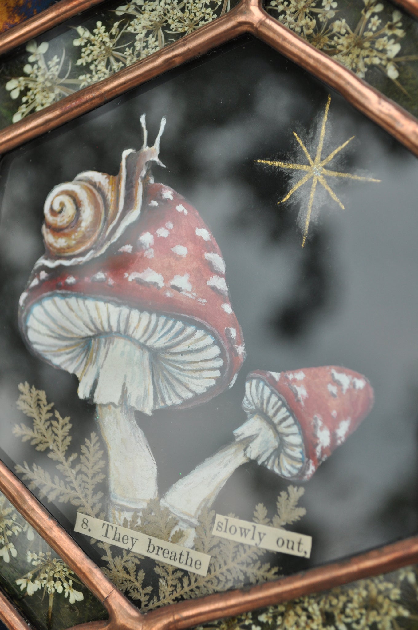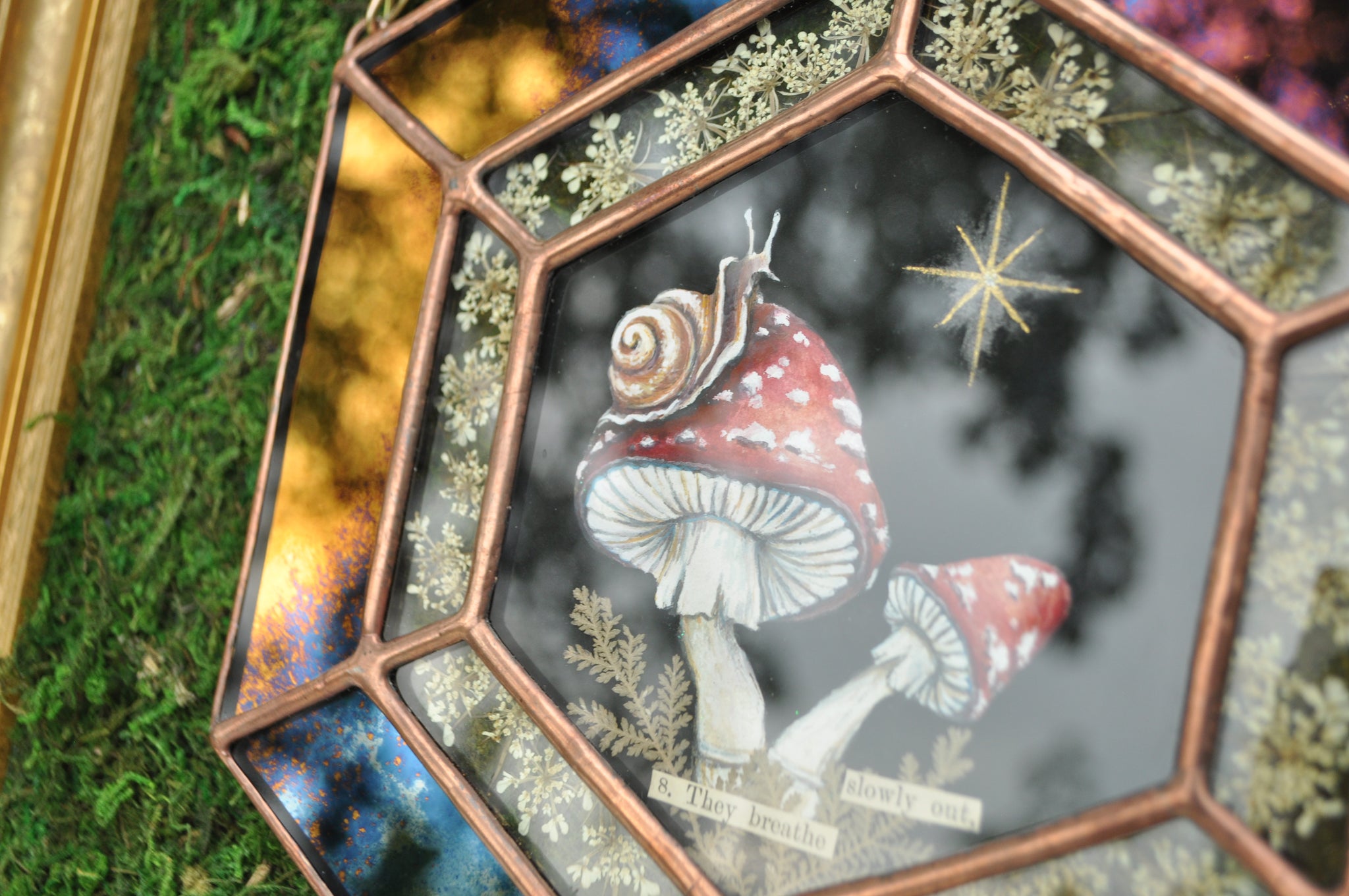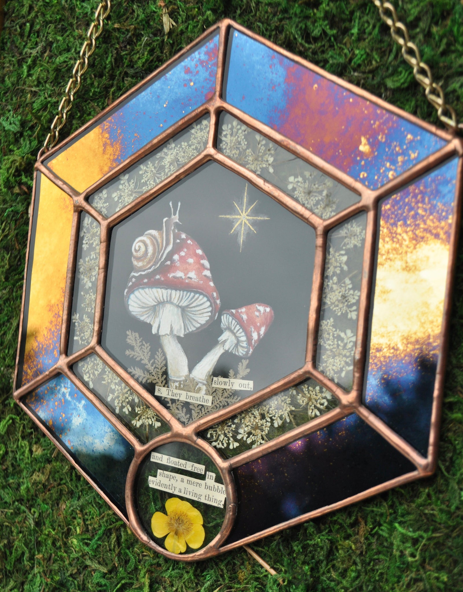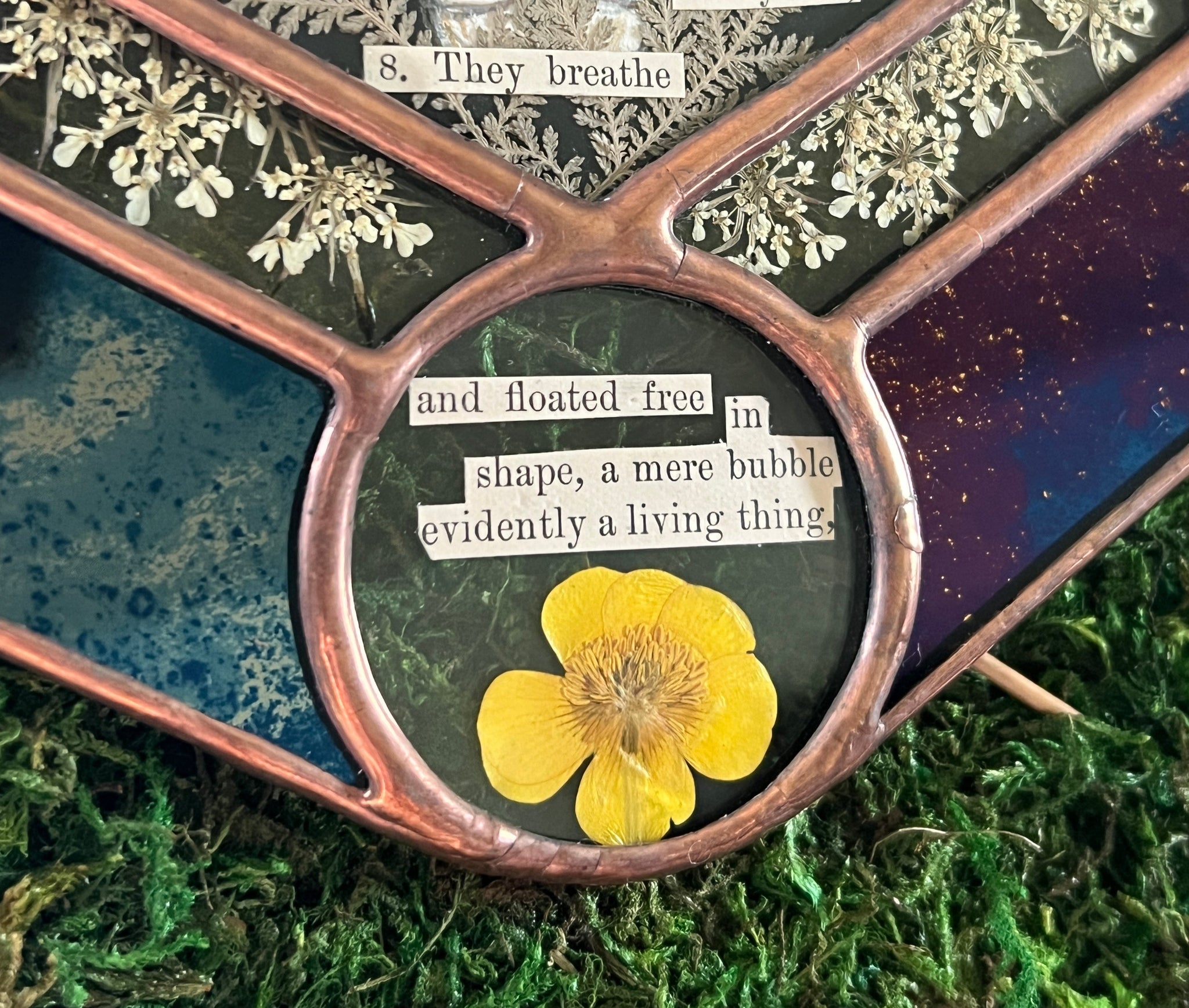 This piece is intended to hang on a wall, however I recommend to keep it out of harsh, bright light, as it will affect the longevity of the colors in the artwork and flora. I make the best efforts to preserve all elements to my artwork, but they may eventually fade over time.